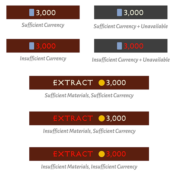 Intentionally never disabling purchase buttons so players could still discover alternative ways to complete a purchase via currency conversion or the “Get More” system (with the exception of items with purchase timers or limits).